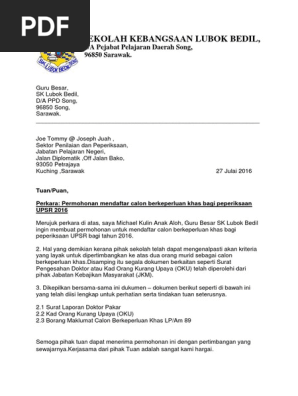 Surat Mendaftar Calon Berkeperluan Khas Upsr 2016 Pdf