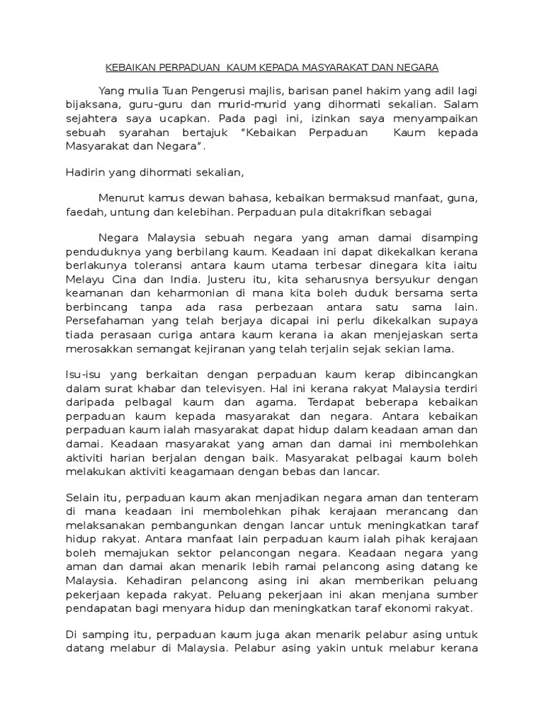 Contoh Karangan Kepentingan Perpaduan Kaum Di Malaysia Pdf
